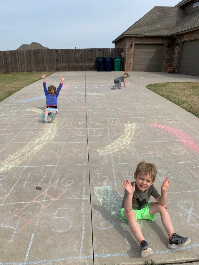 - A few weeks ago, my family was blessed by the kindness of my best friend. After being cooped up in the house during our “shelter in place” time, we walked outside one morning and found a HUGE game of Chutes and Ladders chalked on our driveway! Check out these other ideas: